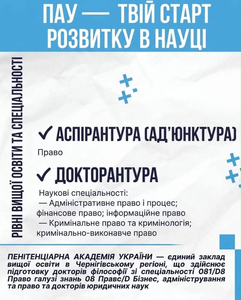 Вступ до аспірантури (ад’юнктури) та докторантури Пенітенціарної академії України!